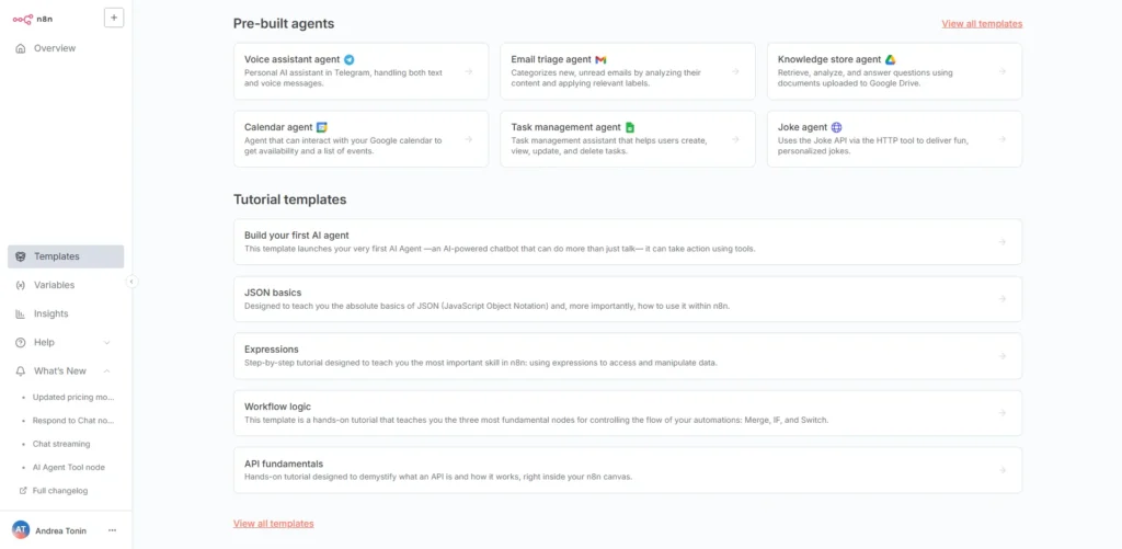 - Da lì puoi iniziare a usare n8n.